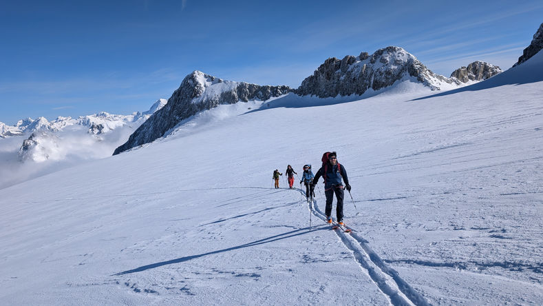Der Permafrost löst sich auf, die Gletscher schmelzen. Kein Problem im Winter! Ab März beginnt die beste Zeit hohe Berg zu besteigen und den mühsamen Abstieg in eine riesen Gaudi zu verwandeln.